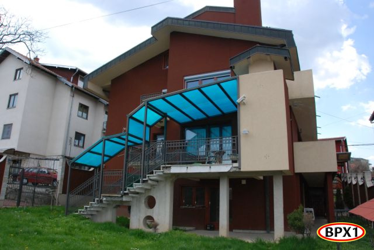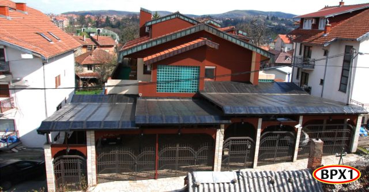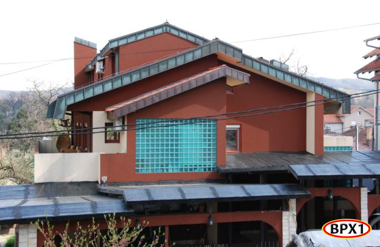 Porodična stambena zgrada - kuća 451 m2 i 6.78 a/m2(Su+Pr+1sp+Pk ).Moderna, urbana, ekskluzivna vila nedaleko od centra Vrnjačke Banje, sa modernim arhitektonskim rešenjem   (enterijerom i eksterijerom). Kvalitetno građena i izolovana toplotnim izolatorom. Ima centralno grejanje na gas, lož ulje ili čvrsto gorivo. Opremljena je tel.fah-om, internetom i sistemom zaštite (alarmom i video nadzorom ).Uknjižena. Ima 4 nivoa: